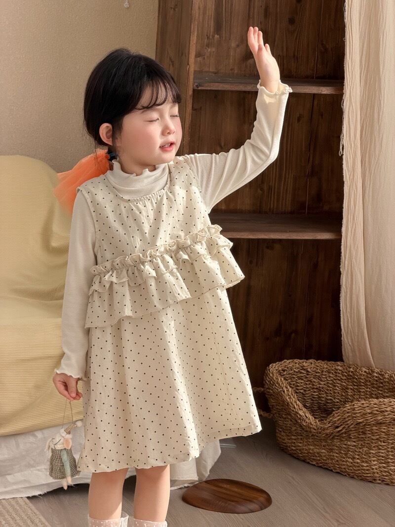 《予約》frill dot onepiece 女の子 ワンピース パンツ 春