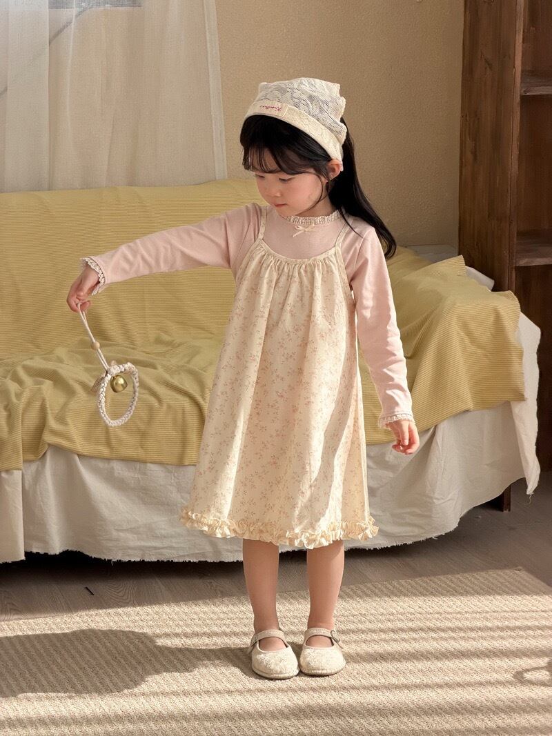 《予約》『2点セット』ribbon tops + flower onepiece 女の子 ワンピース トップス 春
