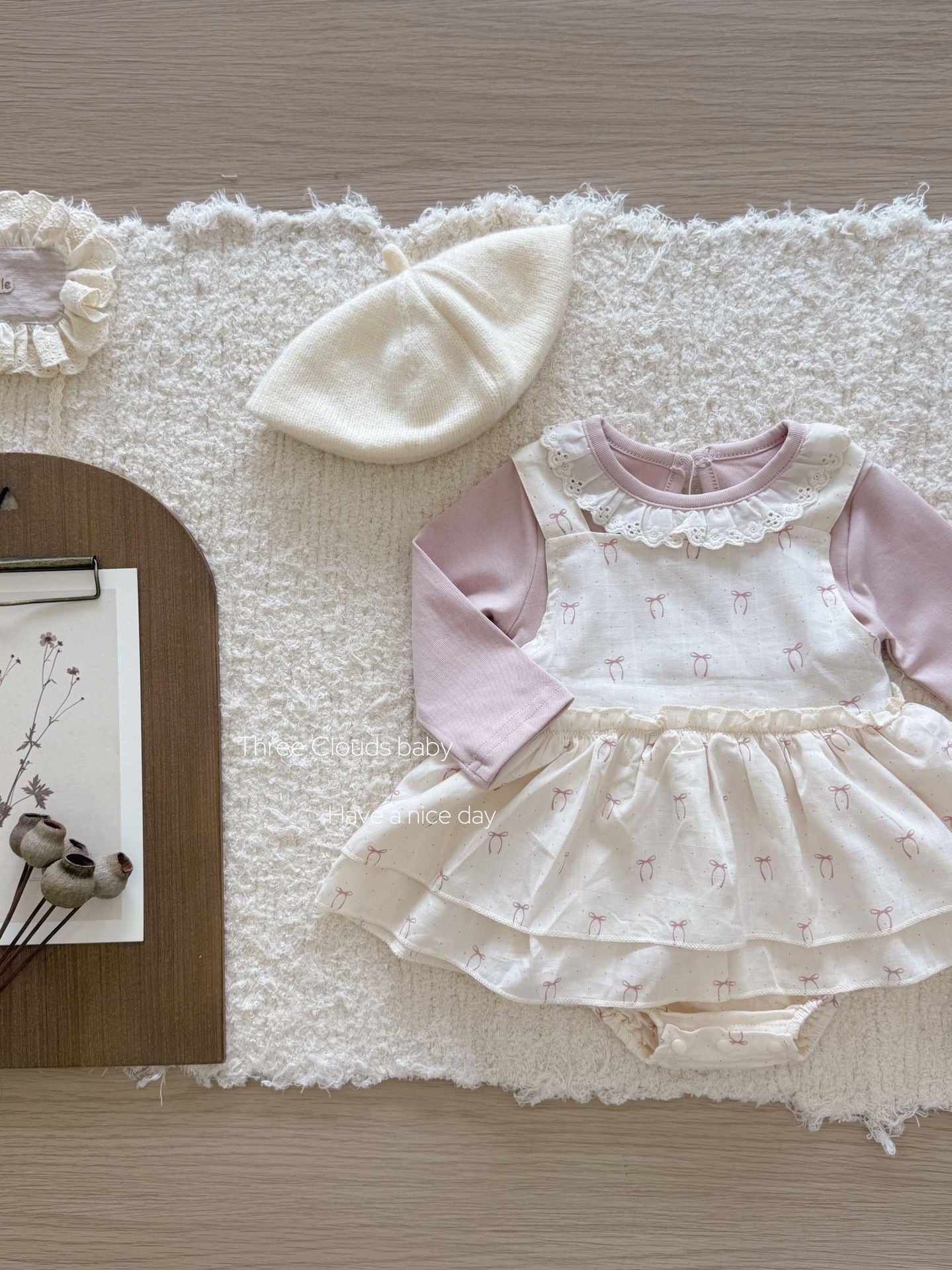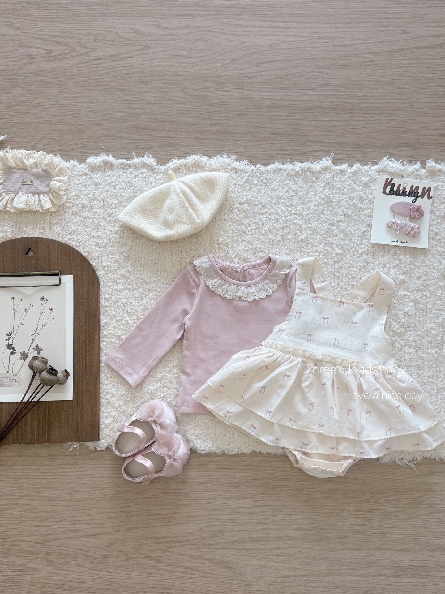 《予約》『2点セット』ribbon dot rompers + race collar tops 女の子 ベビー ロンパース 花柄 刺繍 淡色