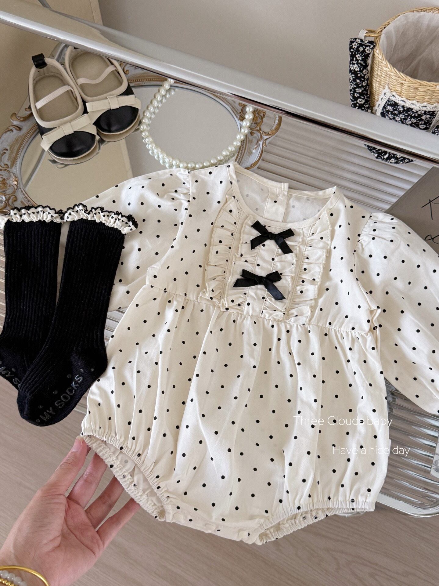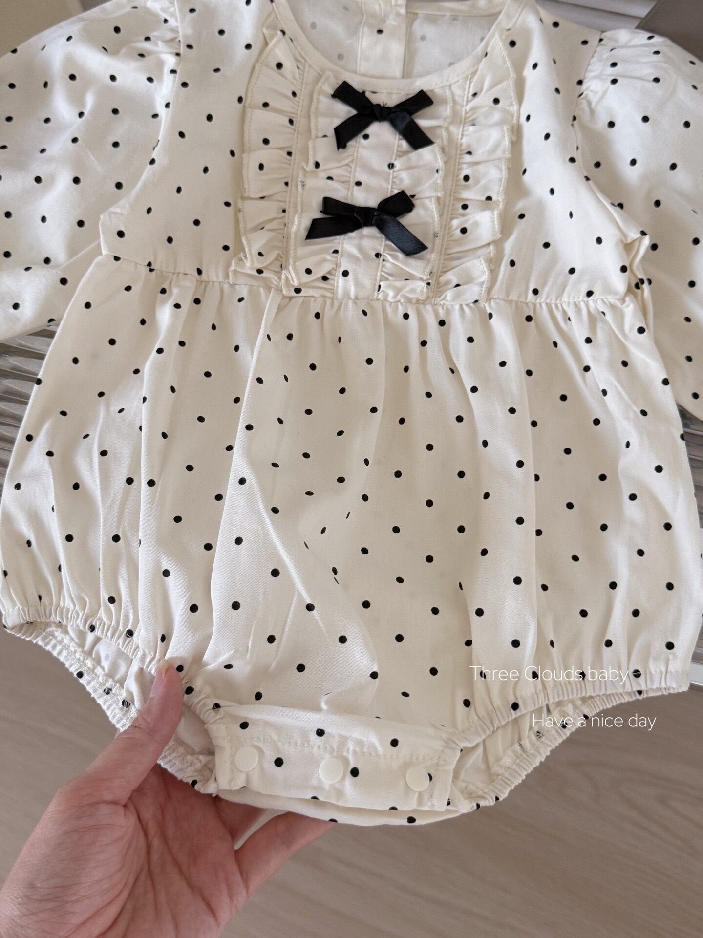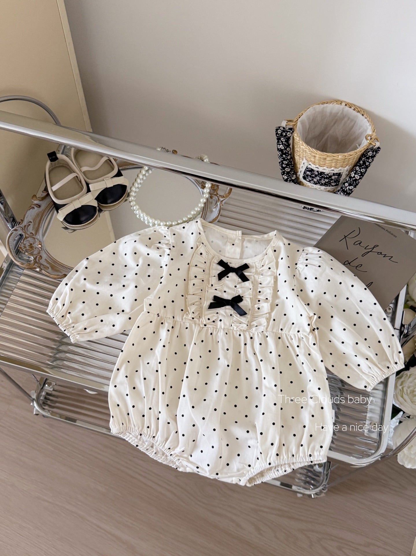 《予約》ribbon dot rompers 女の子 ベビー ロンパース リボン