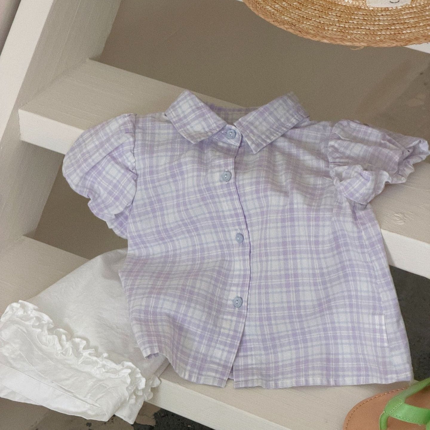 《予約》check short blouse