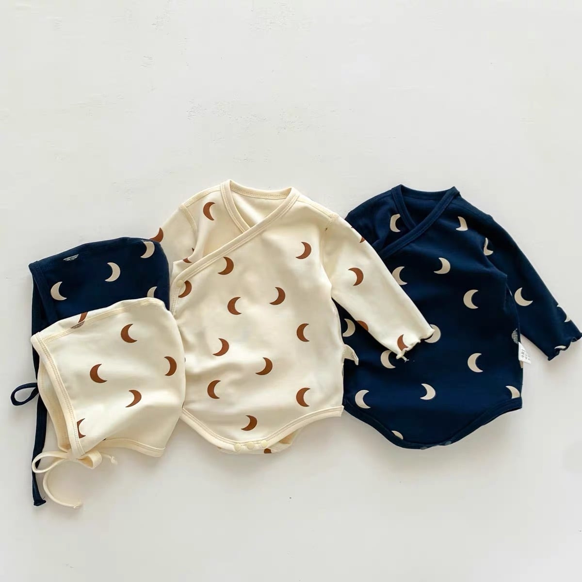 《予約》『2点セット』short moon rompers + bonnet 女の子 男の子 ベビー 新生児